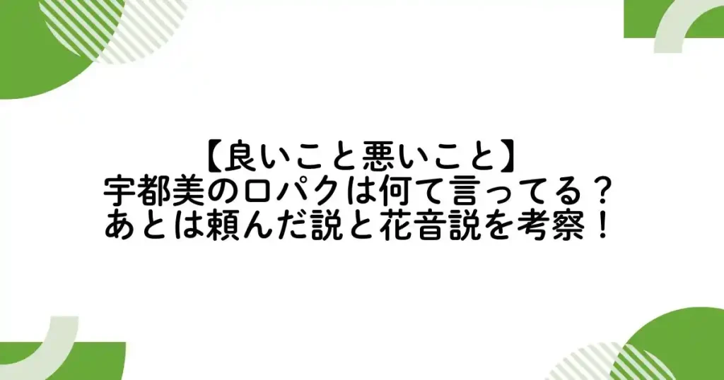 【良いこと悪いこと】宇都美の口パクは何て言ってる?あとは頼んだ説と花音説を考察!