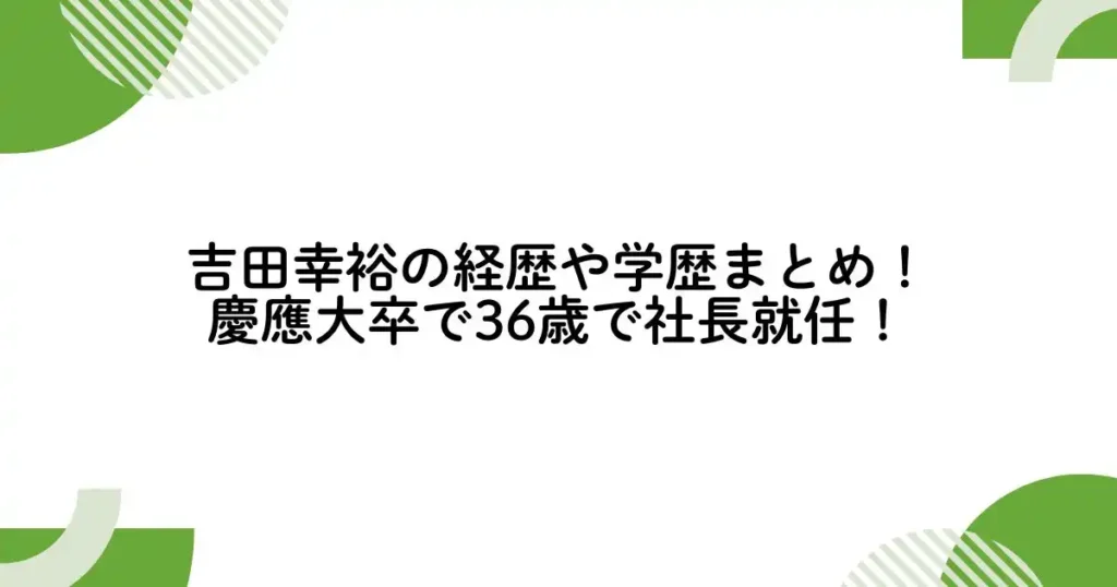 吉田幸裕の経歴や学歴まとめ!慶應大卒で36歳で社長就任!